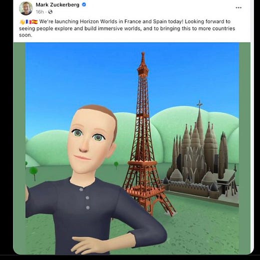 Será casualidad, pero ha sido avanzar en Europa y que caiga una lluvia de ataques, críticas, memes y risas sobre el aspecto del metaverso. Los generación X hemos vuelto al cine a ver Matrix y de repente vemos que se ofrece al personal un mundo virtual con gráficos que parecen sacados de la Nintendo Wii o de la Playstation 1. Zuckerberg ha tenido que salir al paso prometiendo inminentes mejoras gráficas pero no la traducción al español en un lanzamiento extraño: mucha imagen promocional con la torre Eiffel y Sagrada Familia, pero ni rastro de ningún idioma que no sea el inglés