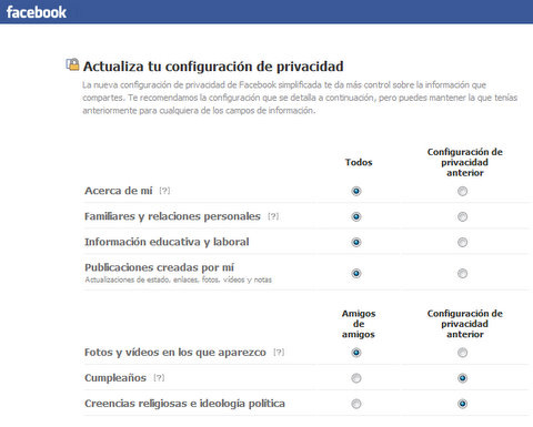 Facebook lleva tiempo intentando que sus usuarios compartan con la máxima apertura y ahora lo vuelven a empujar convirtiendo los intereses del perfil en conexiones con sus páginas de comunidad. Como apunta Louis Gray si uno entra a la pestaña "información" del perfil propio en Facebook es "invitado" a que esas preferencias se conviertan en conexiones explícitas y públicas. La alternativa es que desaparezcan del perfil, sin posibilidad de que sigan siendo privadas a los contactos como antes eran.