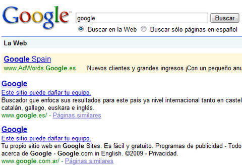 Actualización II: respuesta oficial. Casi una hora de error causado por "error humano" en los datos que les pasa StopBadware.
