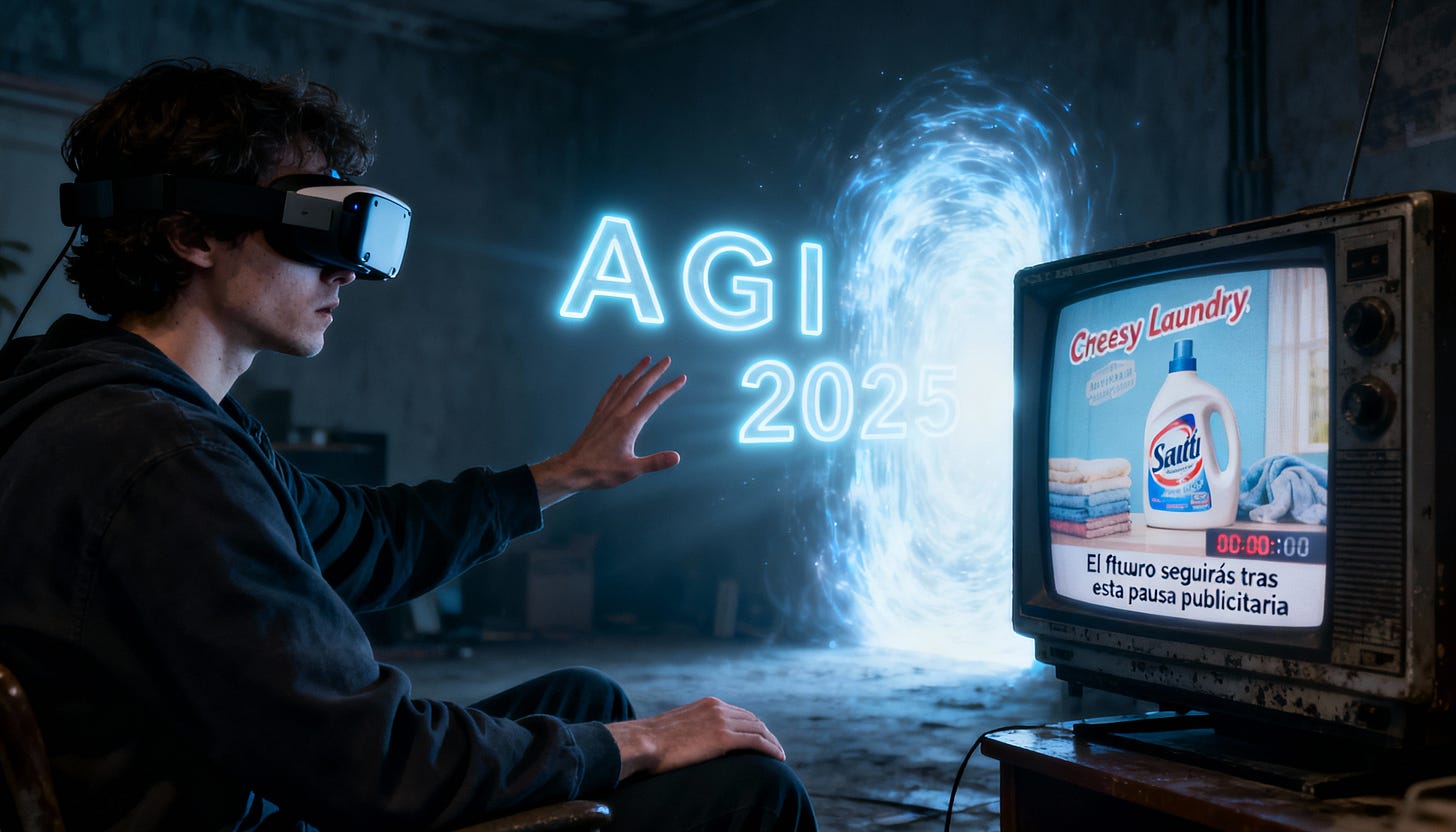Me he vuelto a cruzar con esta entrevista al CEO de OpenAI, en la que a la pregunta de qué es lo que más le emocionaba de 2025 respondía “AGI”. Ya no estamos en el momento del hype; parece que la AGI tendrá que esperar a que acaben unos minutos publicitarios.