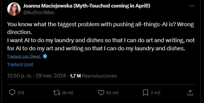 Personalmente no tengo ni idea. Elijo ser optimista y creer que encontraremos ese punto dulce que mencionas, pero con la velocidad de los cambios y la adopción de IA en tantos ámbitos, es cómo mínimo inquietante.