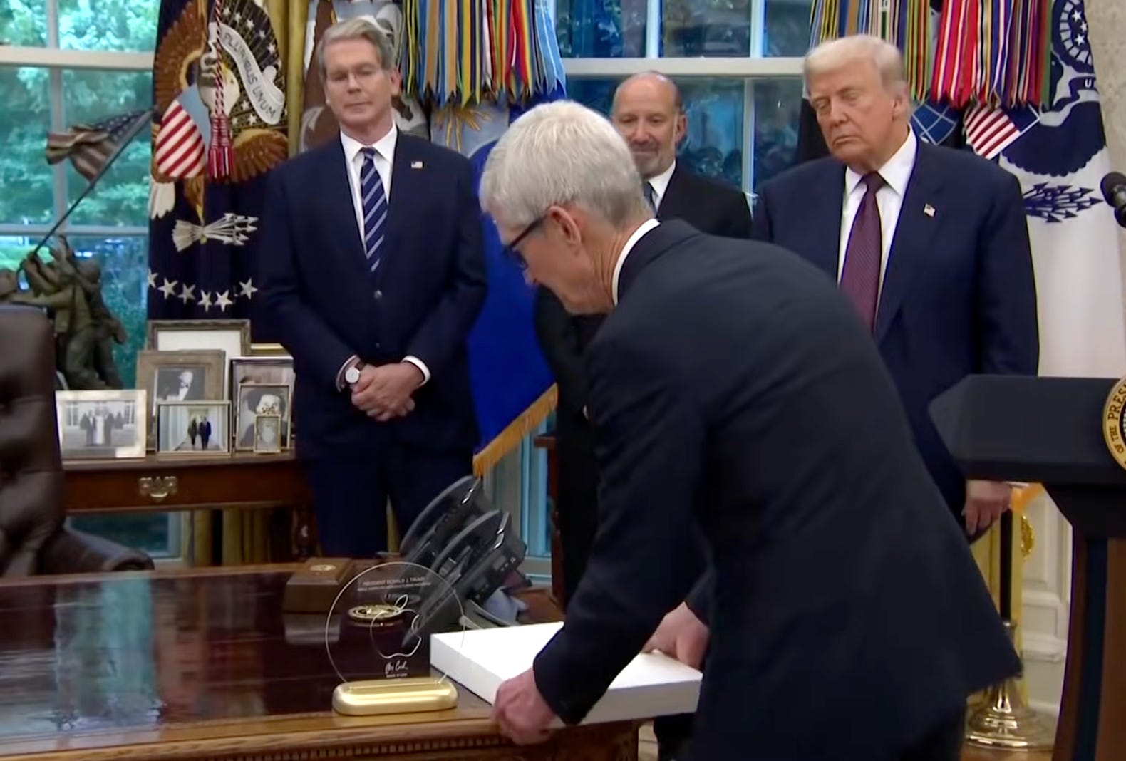 Cuando Tim Cook regaló a Trump una placa con una base de oro de 24 quilates, habían pasado más de cuatro años desde que el presidente acabara su primer mandato.
